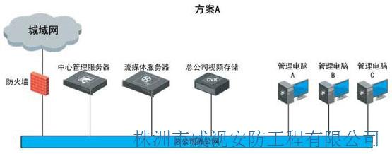 根據(jù)店鋪現(xiàn)場實際情況,方案需使用現(xiàn)有的網(wǎng)絡(luò)資源,同時借用ADSL線路和公司網(wǎng)絡(luò)進行網(wǎng)絡(luò)數(shù)據(jù)傳輸,實現(xiàn)各級網(wǎng)絡(luò)監(jiān)控系統(tǒng)的全部功能。監(jiān)控方案需在總公司設(shè)置總監(jiān)控中心,使之成為一個網(wǎng)絡(luò)監(jiān)控站,可隨意調(diào)看系統(tǒng)中任一店鋪的任一畫面。