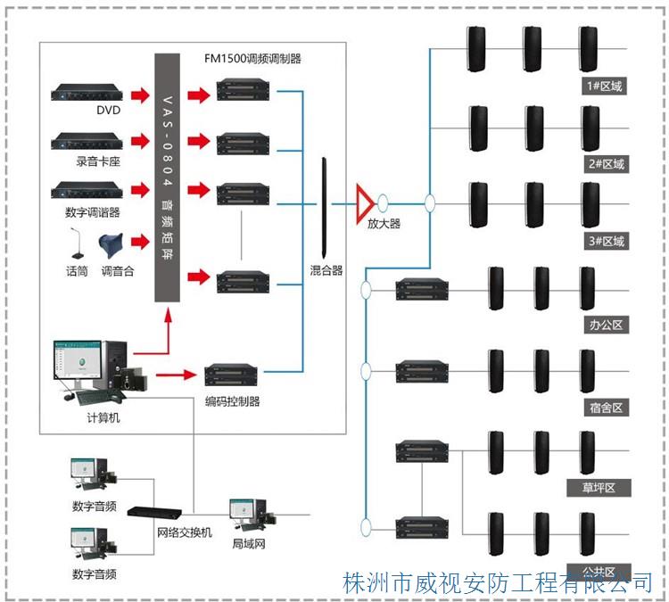公共廣播系統(tǒng)是在有限范圍內為公眾服務的廣播。在常規(guī)情況下,公共廣播信號通過布設在廣播服務區(qū)的廣播線路傳輸,是一種單向的有線廣播。用于發(fā)布內部信息、發(fā)布作息信號、提供背景音樂以及用于尋呼和強行插入災害性事故緊急廣播等。